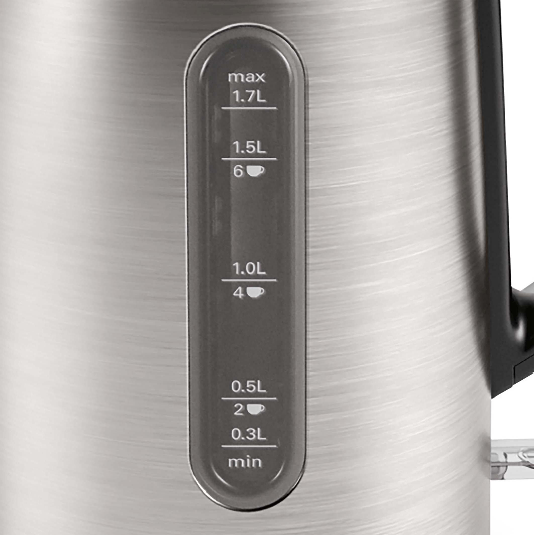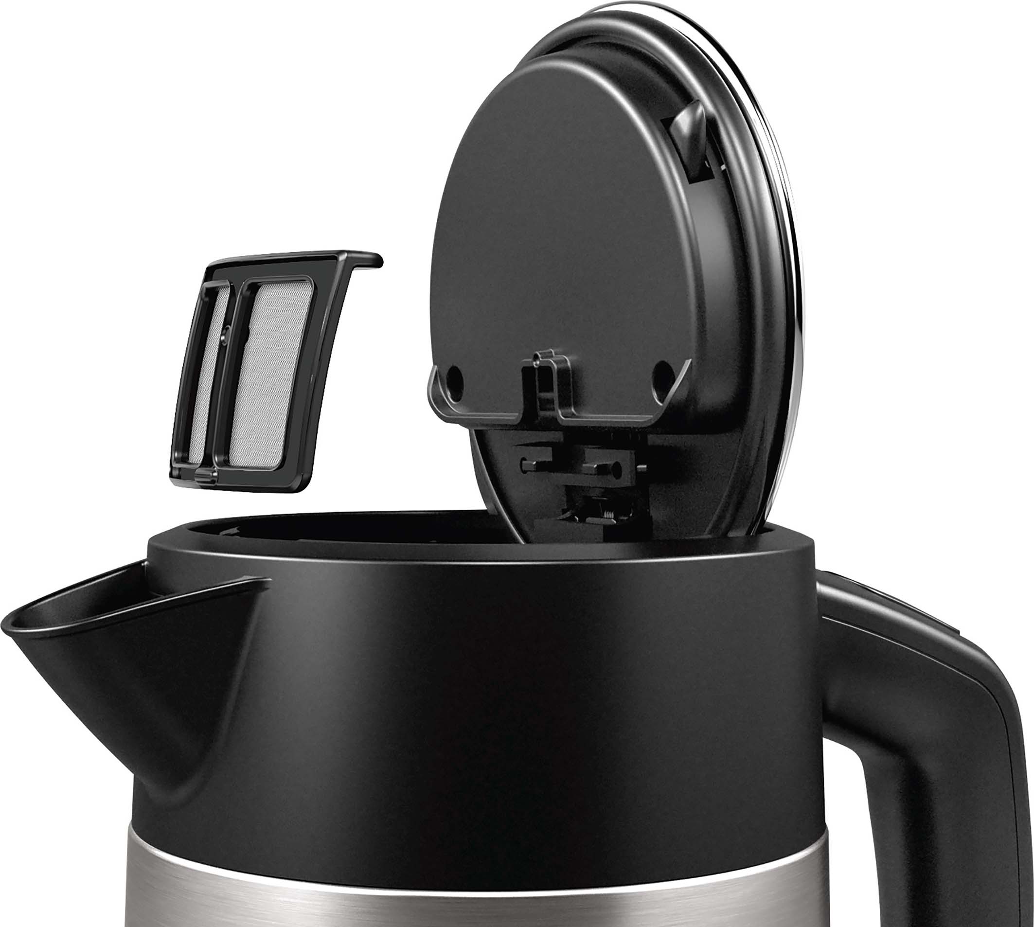 Entnehmbarer Kalkfilter aus Edelstahl Edelstahlboden - Heizung abgedeckt Easy storage: Kabelaufwicklung zur einfachen und schnellen Verstauung des Kabels Einfache Befüllung über den Ausguss ohne Deckelöffnung möglich 360° kabellos: Aufsetzen des Wasserkochers in jede Richtung Anti-Rutsch-Füße an der Basis Beleuchteter Ein-/Ausschalter