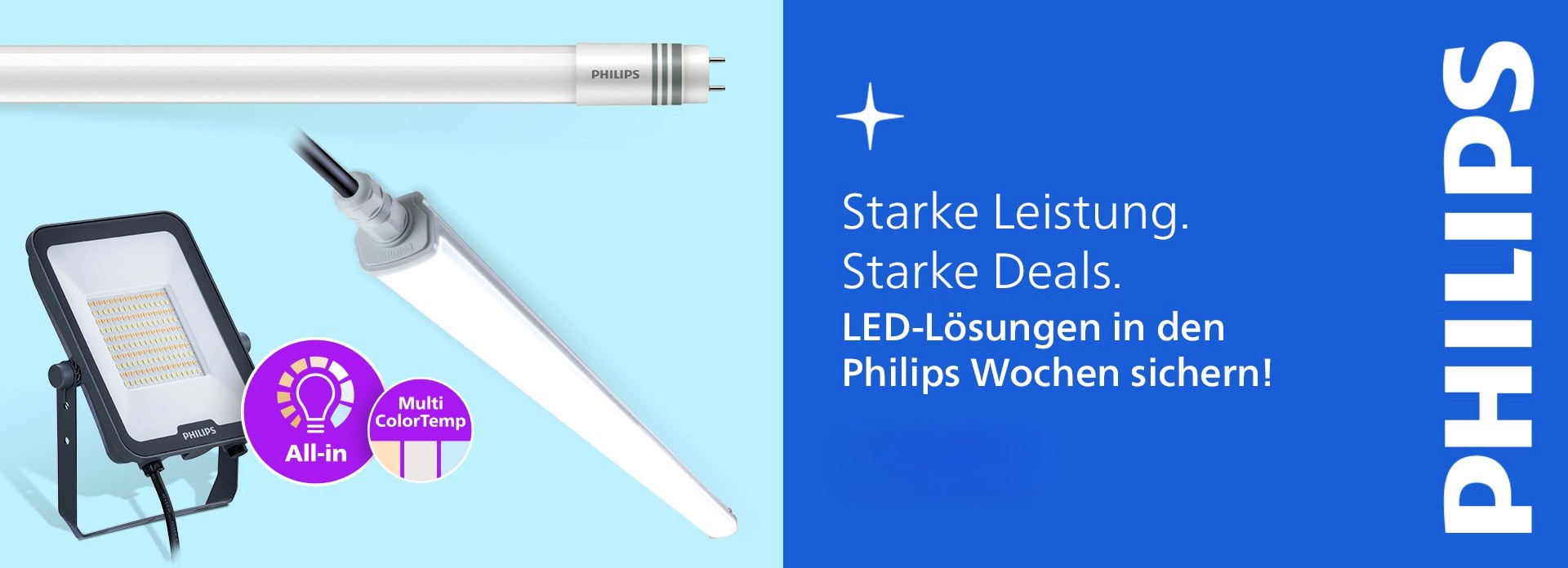 Warmweiß, Neutralweiß oder Kaltweiß? Einfach per Schalter wählen! Hohe Philips-Qualität, energieeffizient, langlebig und für vielfältige Anwendungen – von Parkplätzen bis Sportanlagen. Jetzt auswählen!